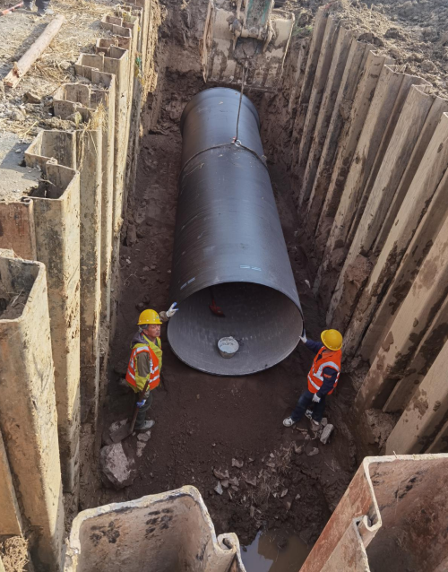 “漢江原水輸水管道復線工程分兩個標段分別招標建設,其中AF段管道長度約23公里,截至目前,B段已完成1561m,C段完成3712m,D段261m,E段197m,F(xiàn)段32m,泵站段完成514m,已完成總工程量的27%?!笔┕がF(xiàn)場,該工程項目負責人介紹。除了搶抓工期,施工方還通過增加作業(yè)面,增加人手等方式,全力推進項目建設進度。