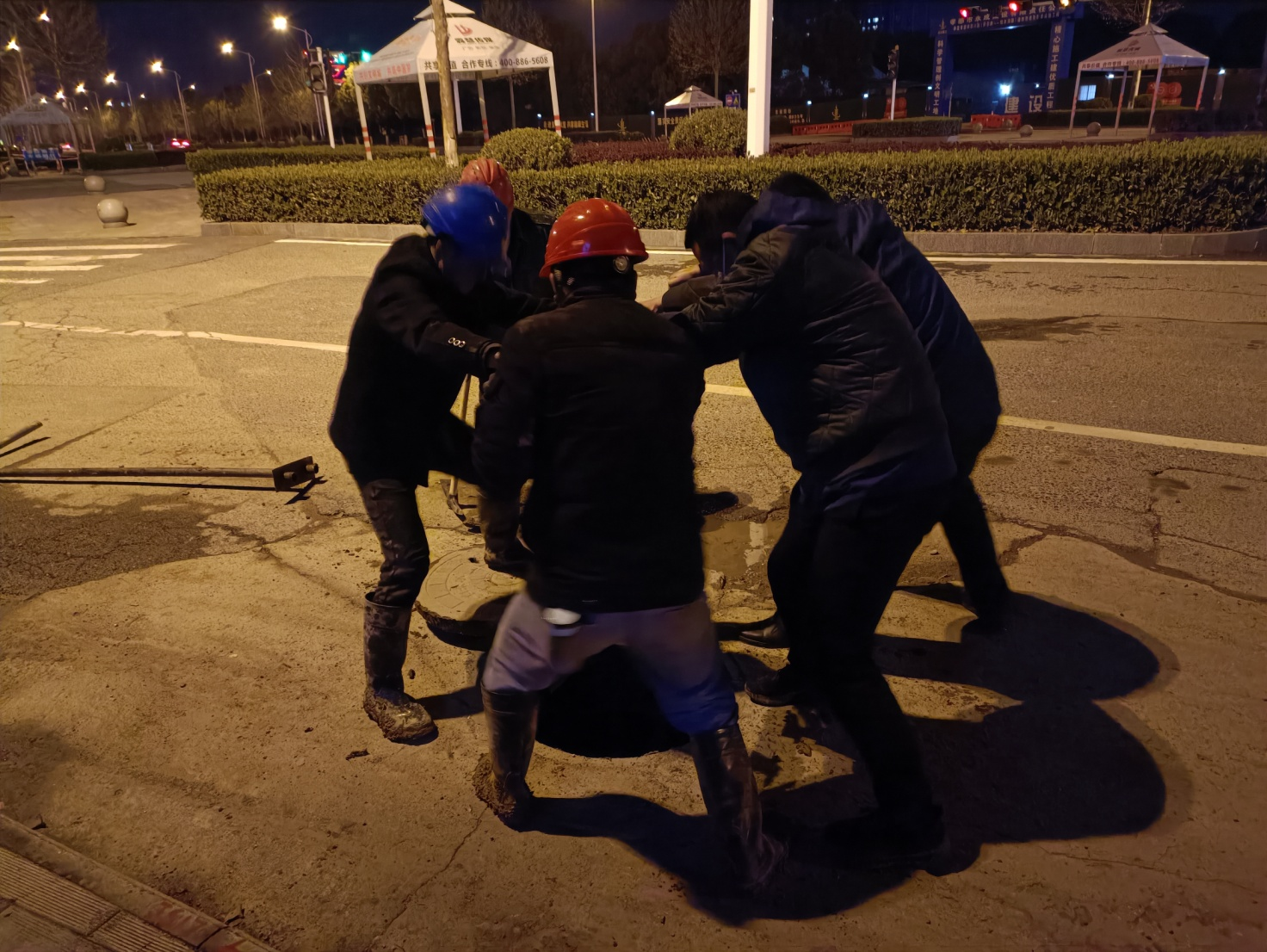 晚上10點(diǎn),更換工作正式開(kāi)始,關(guān)閘止水、排空積水、拆除舊蝶閥、安裝新蝶閥,流程看似簡(jiǎn)單,但每道工序都有嚴(yán)格的操作規(guī)程,需要現(xiàn)場(chǎng)每個(gè)人的付出和配合。時(shí)值倒春寒天氣,現(xiàn)場(chǎng)寒風(fēng)陣陣,工作坑內(nèi)更是寒氣逼人,但維修人員全然不顧,搶時(shí)間,爭(zhēng)速度,分工協(xié)作,輪流上陣,連續(xù)作戰(zhàn)。