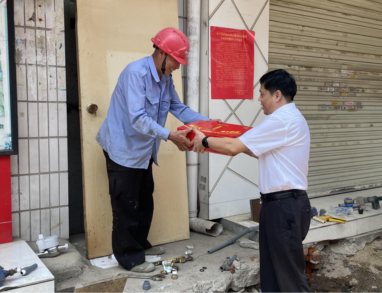 嚴(yán)書高一行看望慰問了奮戰(zhàn)在高溫工作崗位上的一線勞動(dòng)者,為他們送去了防暑降溫物品,并叮囑大家注意防暑降溫,確保自身健康安全。同時(shí),要求自來水公司要切實(shí)關(guān)心職工生產(chǎn)生活條件,優(yōu)化施工安排,科學(xué)確定高溫環(huán)境下作息時(shí)間,強(qiáng)化現(xiàn)場管理,認(rèn)真落實(shí)防暑降溫措施,嚴(yán)格執(zhí)行各項(xiàng)規(guī)章制度,確保平安度夏、安全生產(chǎn)。