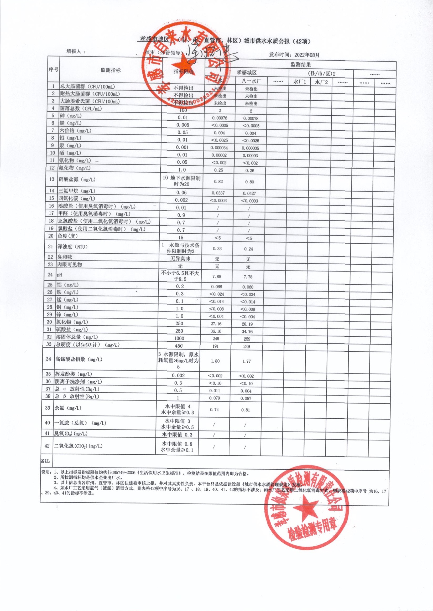 2022年8月水質報告