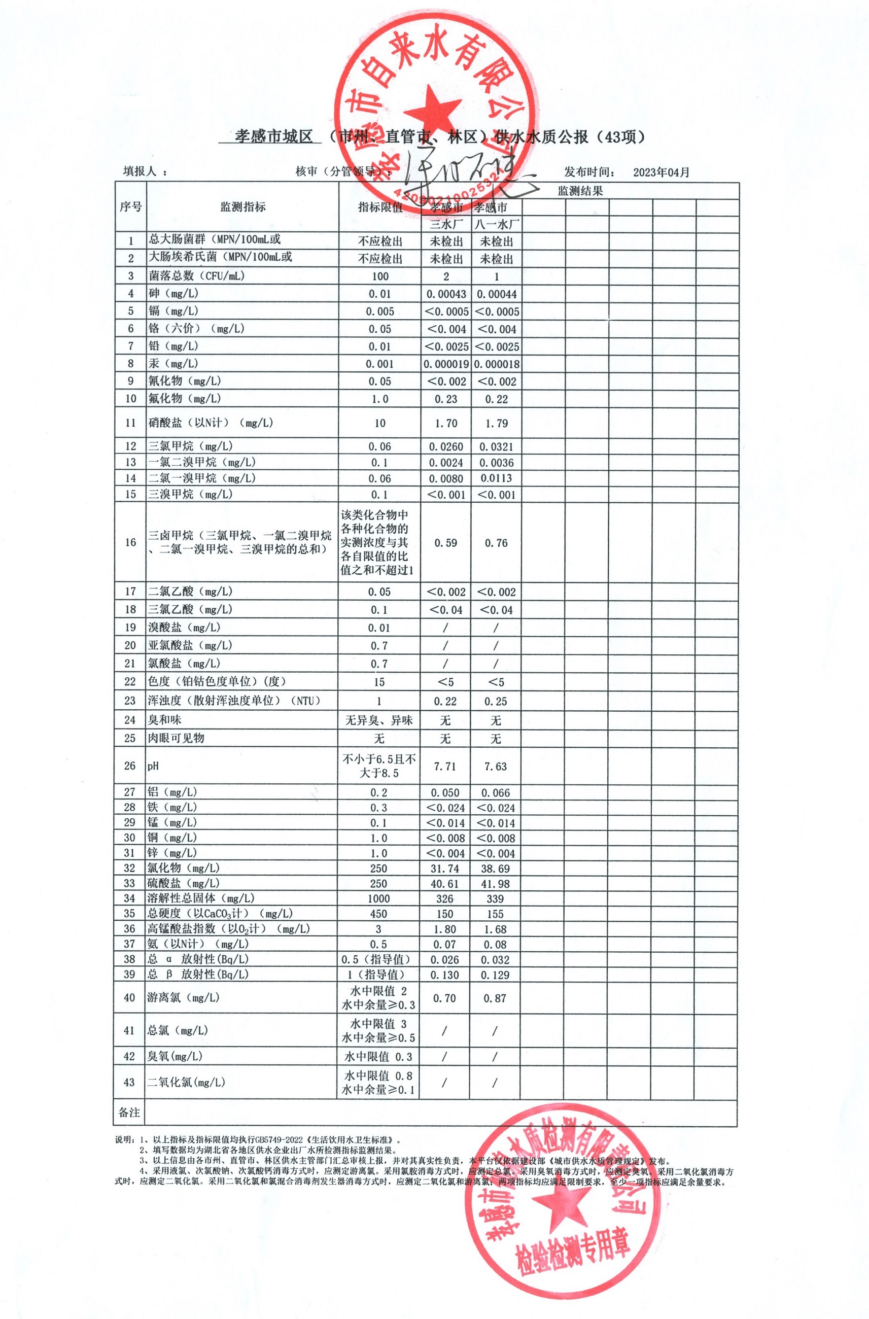 2023年4月水質(zhì)報告