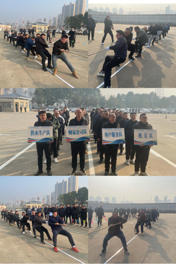 此次活動由公司工會組織開展,共分為機(jī)關(guān)隊(duì)、暢泉公司隊(duì)、供水生產(chǎn)隊(duì)、客戶服務(wù)隊(duì)四個隊(duì)伍,每個隊(duì)伍選派12人參加比賽。通過抽簽決定比賽順序后,隨著裁判員的一聲哨響,雙方選手緊緊地握住繩索,身體后傾,腳用力的蹬住地面,試圖將對方的隊(duì)伍拽過來。經(jīng)過一番激烈的角逐,暢泉公司隊(duì)以絕對實(shí)力獲得第一名,供水生產(chǎn)隊(duì)、機(jī)關(guān)隊(duì)分別獲得二三名。
