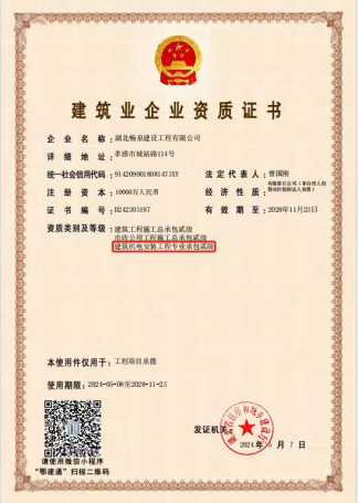湖北暢泉建設(shè)工程有限公司繼去年晉升建筑工程施工總承包和市政公用工程施工總承包“雙貳級”資質(zhì)后,日前再傳捷報,該公司獲批“建筑機電安裝工程專業(yè)承包貳級資質(zhì)”,實現(xiàn)技術(shù)實力再提升、業(yè)務(wù)范圍再拓展,進一步提高了市場競爭力。下一步,該公司將按照澴川國投堅持改革助推高速高質(zhì)量發(fā)展的總體部署,積極闖市場搶機遇,努力做大規(guī)模、做強實體,切實增強盈利能力與創(chuàng)業(yè)活力。