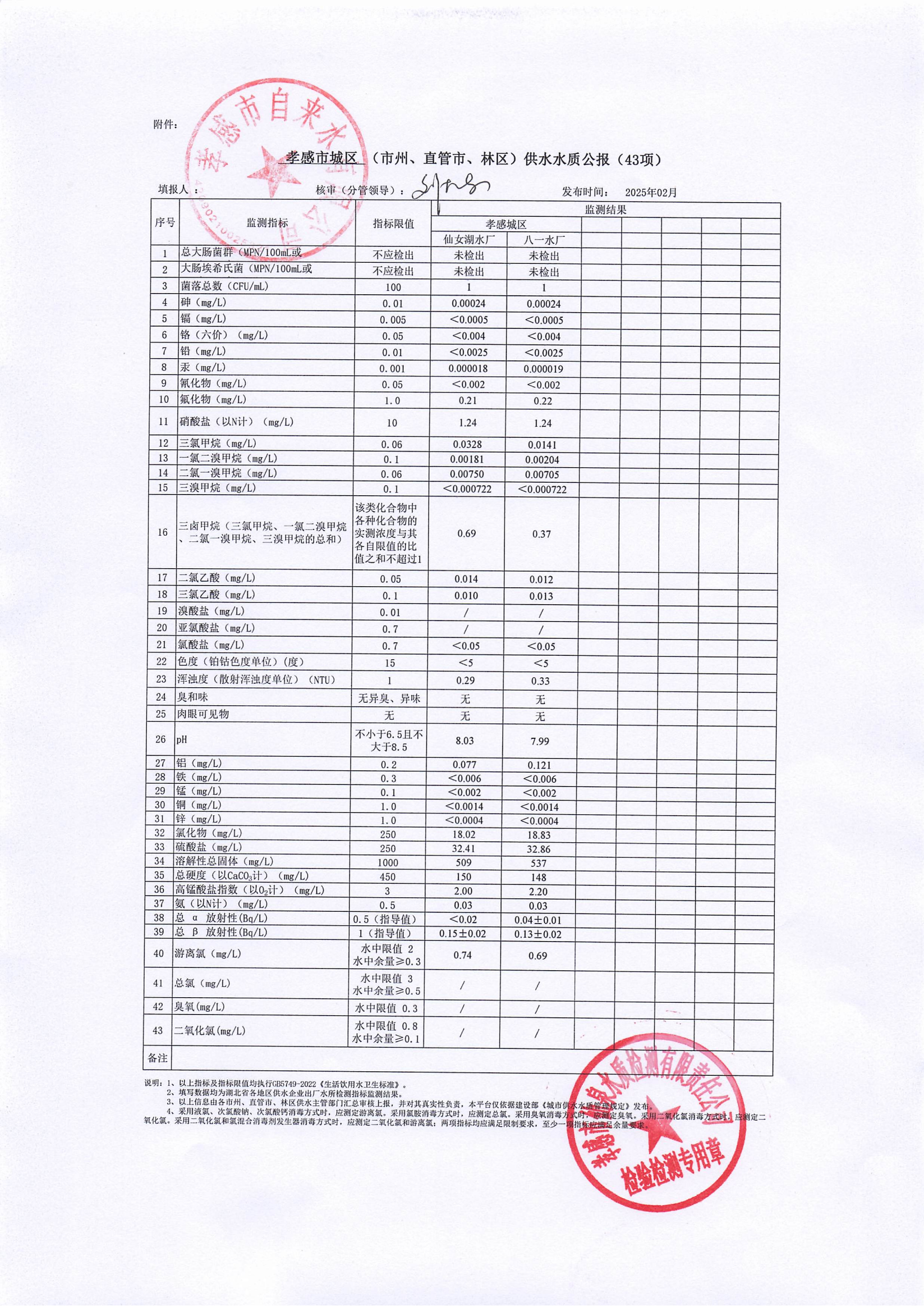 2025年2月水質(zhì)報告
