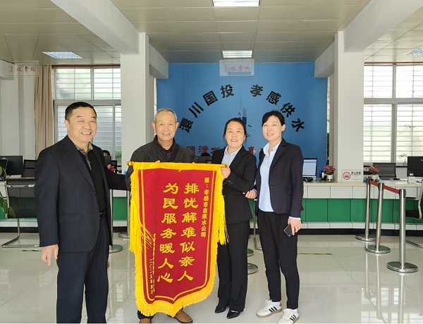 4月14日上午,槐蔭小區(qū)的余先生將一面繡有“排憂解難似親人 為民服務(wù)暖人心”的錦旗贈予自來水公司,并對自來水公司員工的辛勤工作表示了衷心的感謝。