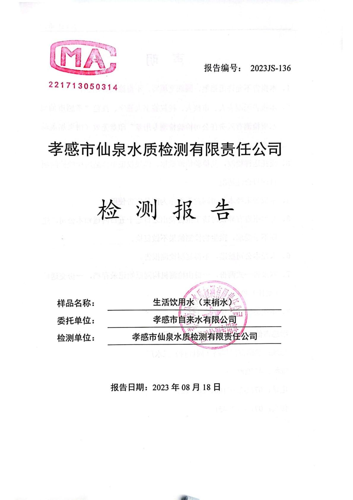 2023年8月檢測(cè)報(bào)告