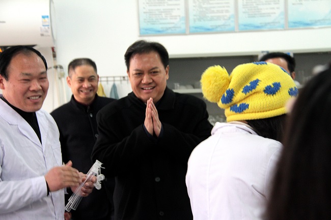來到位于城郊的三水廠,潘啟勝與值班崗位上的干部職工一一握手,向大家致以新春問候。他特地走進(jìn)水質(zhì)監(jiān)測站化驗(yàn)室,看望正在緊張工作中的化驗(yàn)人員,與大家親切交談,詢問水質(zhì)檢測能力與水質(zhì)合格率等情況,并勉勵(lì)大家堅(jiān)守崗位、辛勤工作,把好水質(zhì)關(guān),讓廣大市民度過一個(gè)祥和歡樂的新春佳節(jié)。