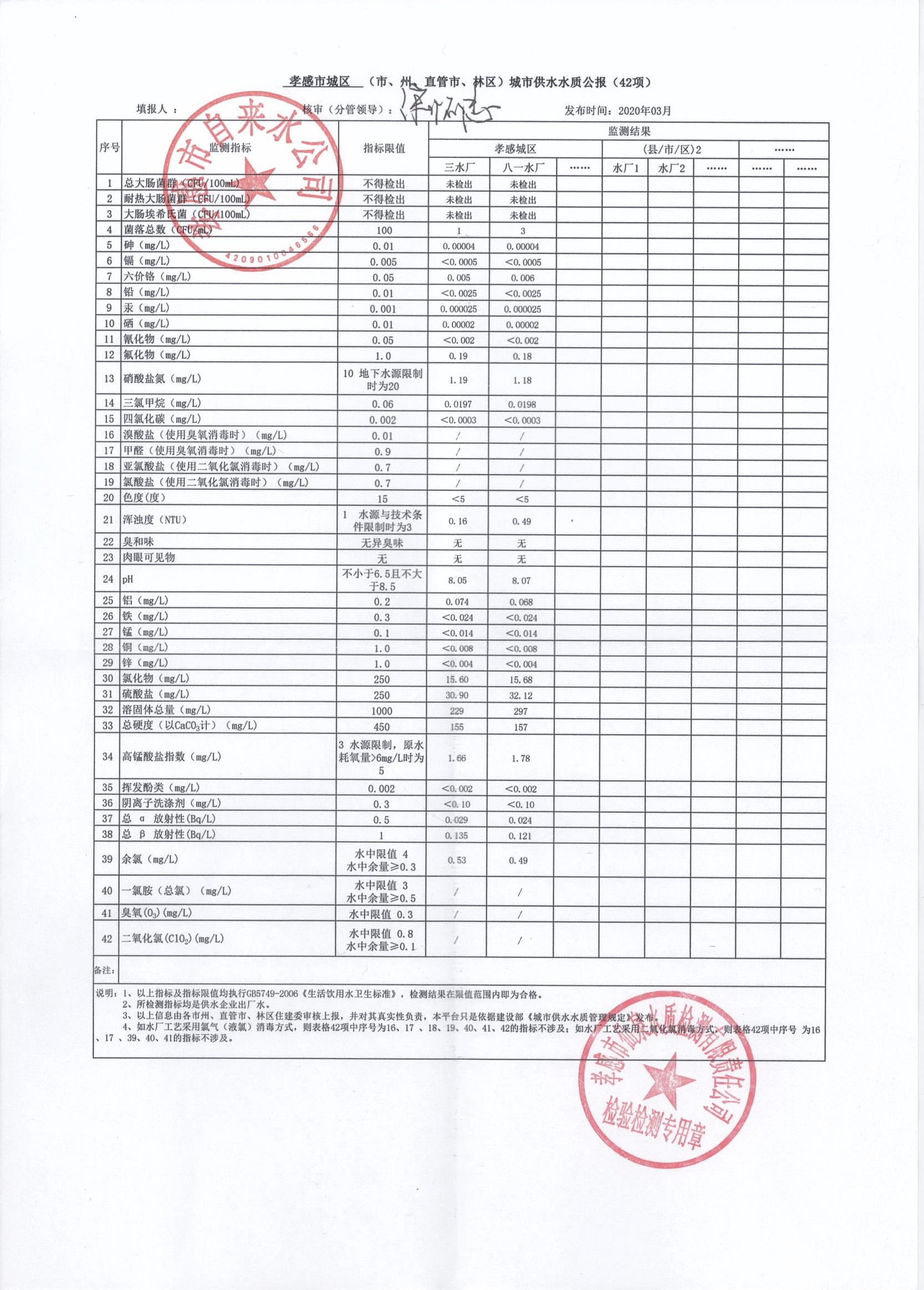 2020年3月水質(zhì)報(bào)告