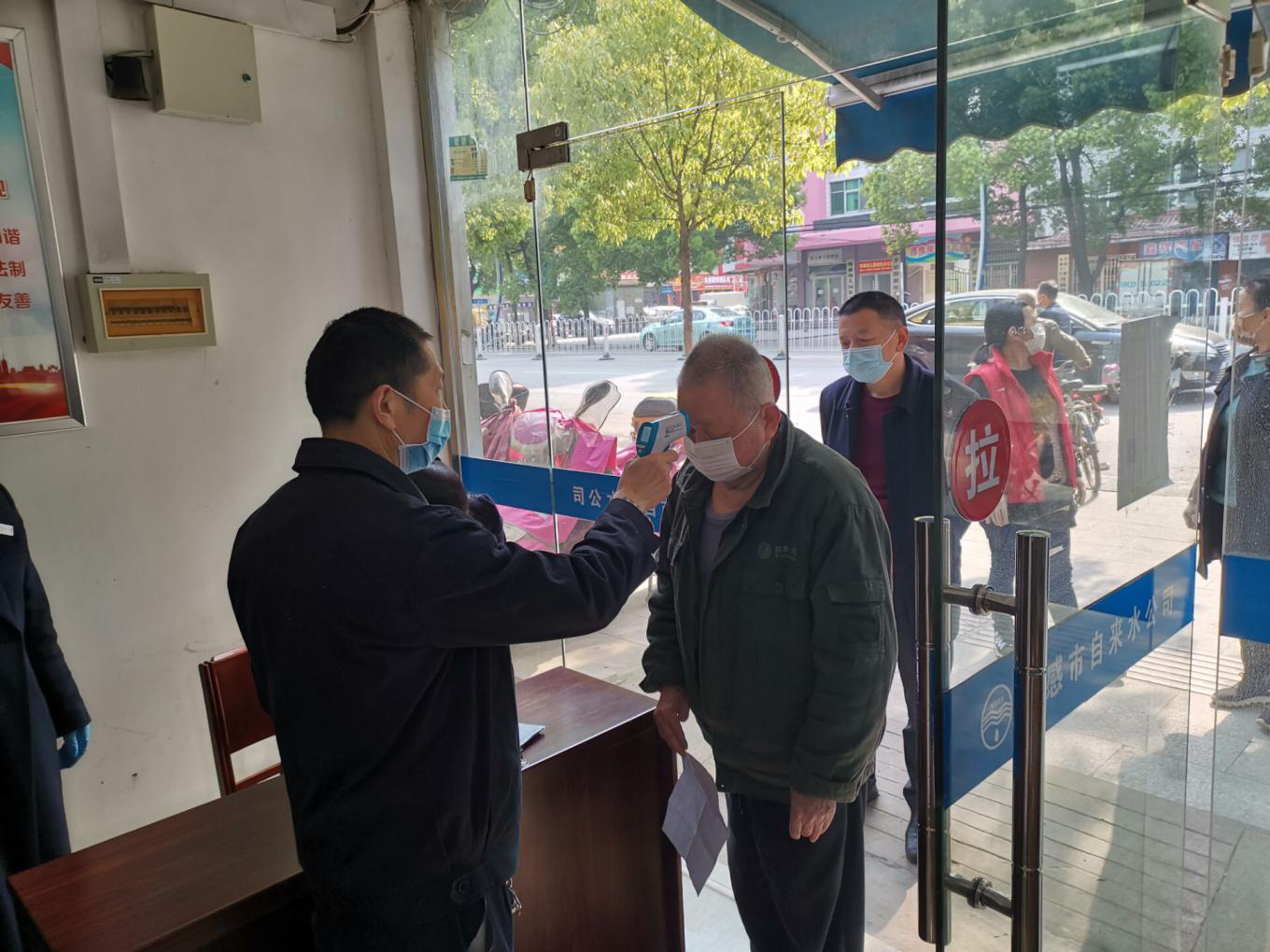 上午9:20,工作人員緊張的忙于體溫測(cè)量、秩序維持、信息登記、線上繳費(fèi)引導(dǎo)等工作時(shí),公司領(lǐng)導(dǎo)來(lái)到各營(yíng)業(yè)服務(wù)網(wǎng)點(diǎn)檢查指導(dǎo)工作,要求全面落實(shí)好各項(xiàng)安全防護(hù)舉措,努力為廣大用戶提供一個(gè)安全、健康、高效的服務(wù)環(huán)境。
