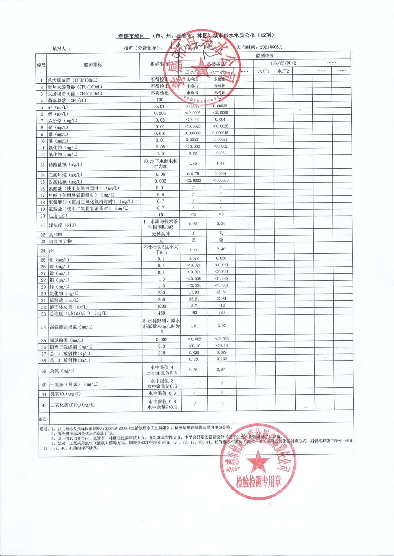 2021年6月水質(zhì)報(bào)告