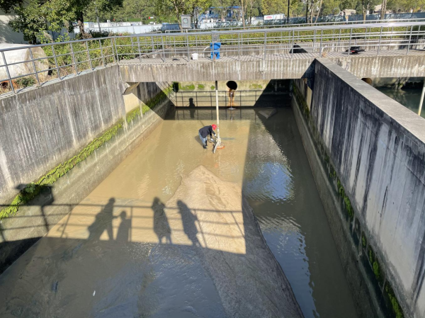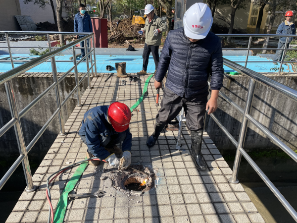 11月10日,在三水廠一期回收水池上,幾名機(jī)修工正在進(jìn)行切割拆除工作,完成原有舊設(shè)備拆除后,他們將進(jìn)行回收水池?cái)嚢柘到y(tǒng)升級(jí)改造。