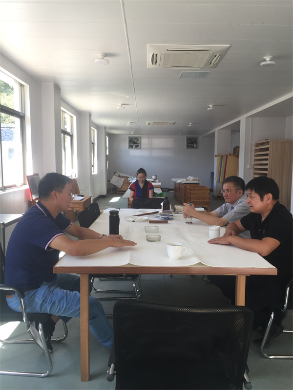 中科大湯書昆院長(zhǎng)、徽硯大師朱岱老師以及竹紙工藝大師來(lái)我公司參觀學(xué)習(xí),探討紙制作技藝、進(jìn)行紙文化交流。