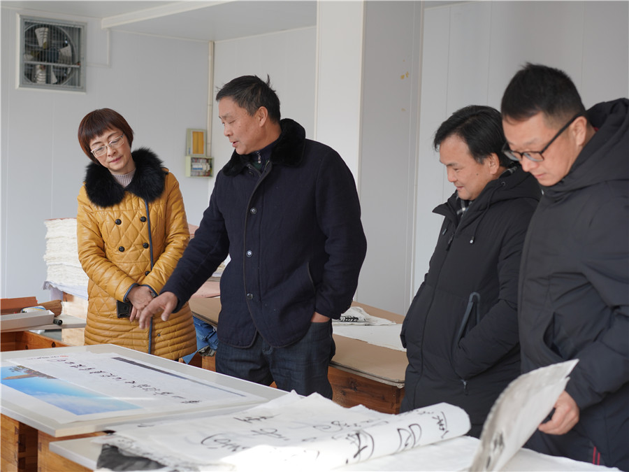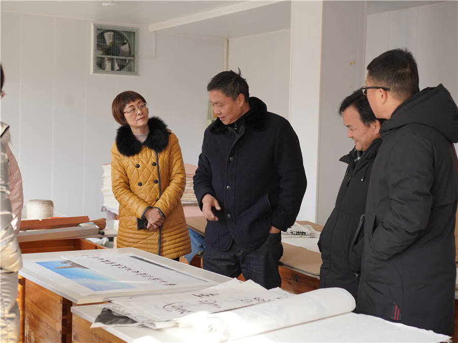 1月11日由市文旅局副局長王迎春帶隊的,黃山市非物質文化遺產傳習基地驗收組到我司黃山市凝霜文化發(fā)展有限公司進行調研工作。